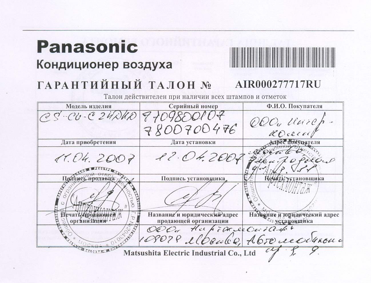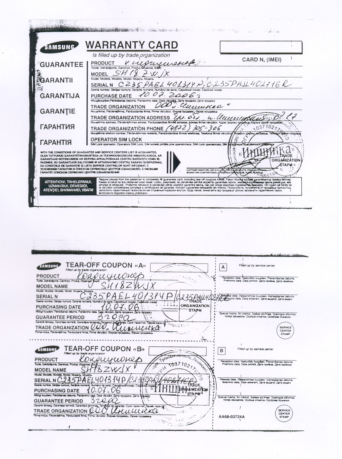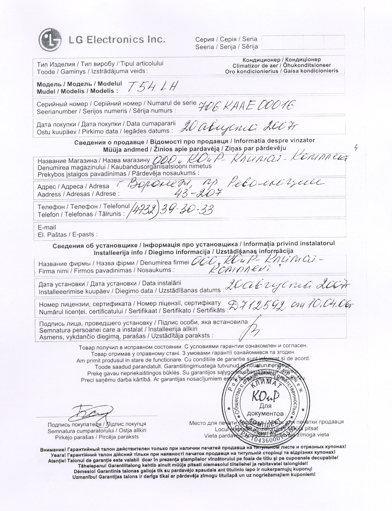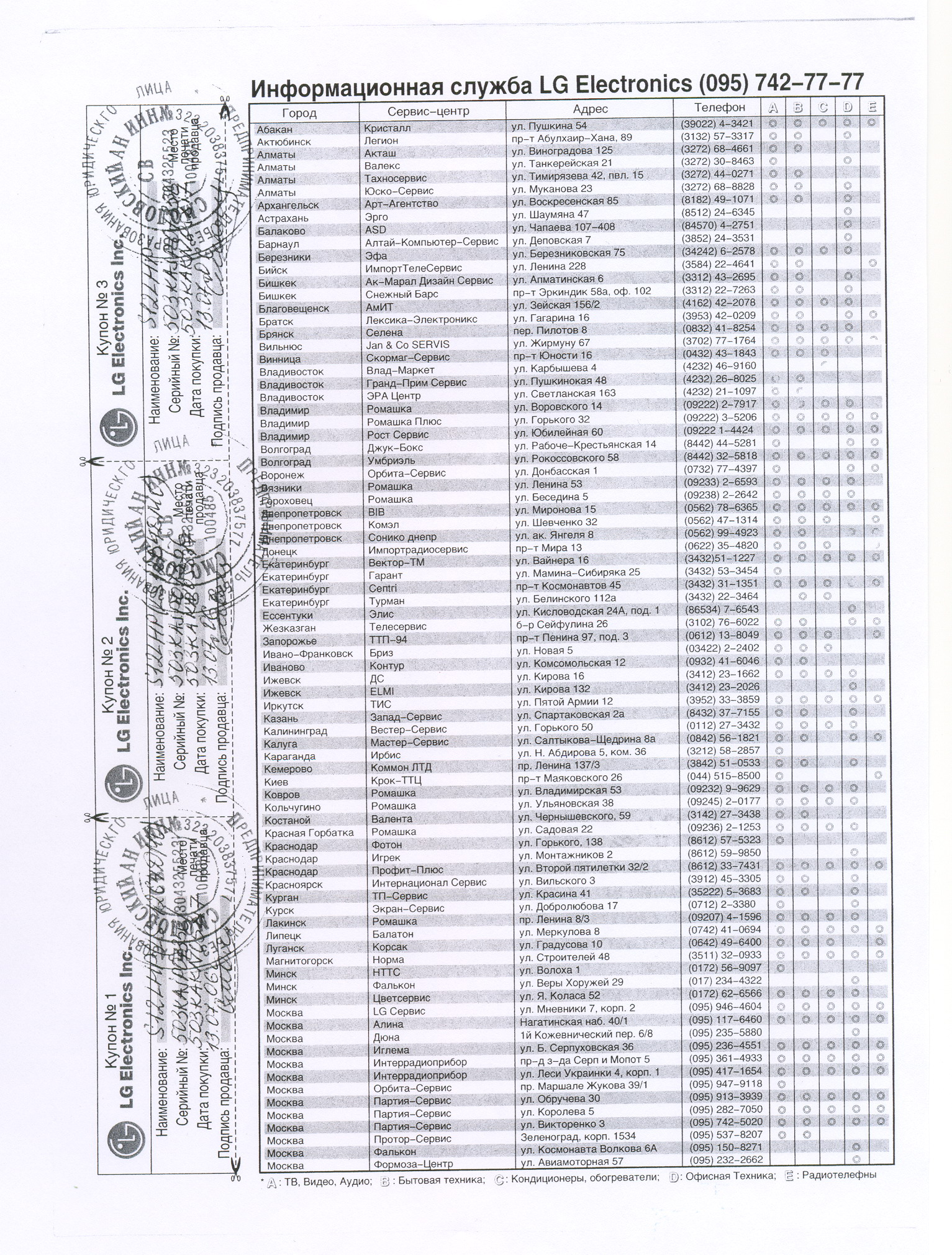 Уважаемые дилеры! Доводим до вашего сведения, что на гарантийном талоне должны стоять печати конечного продавца, т.е. ваши печати и должна присутствовать информация о конечном покупателе, т.е. о лице, которому вы продали аппарат.